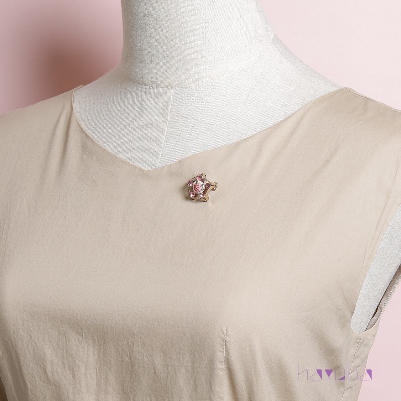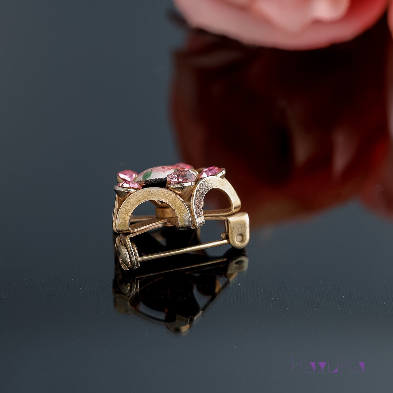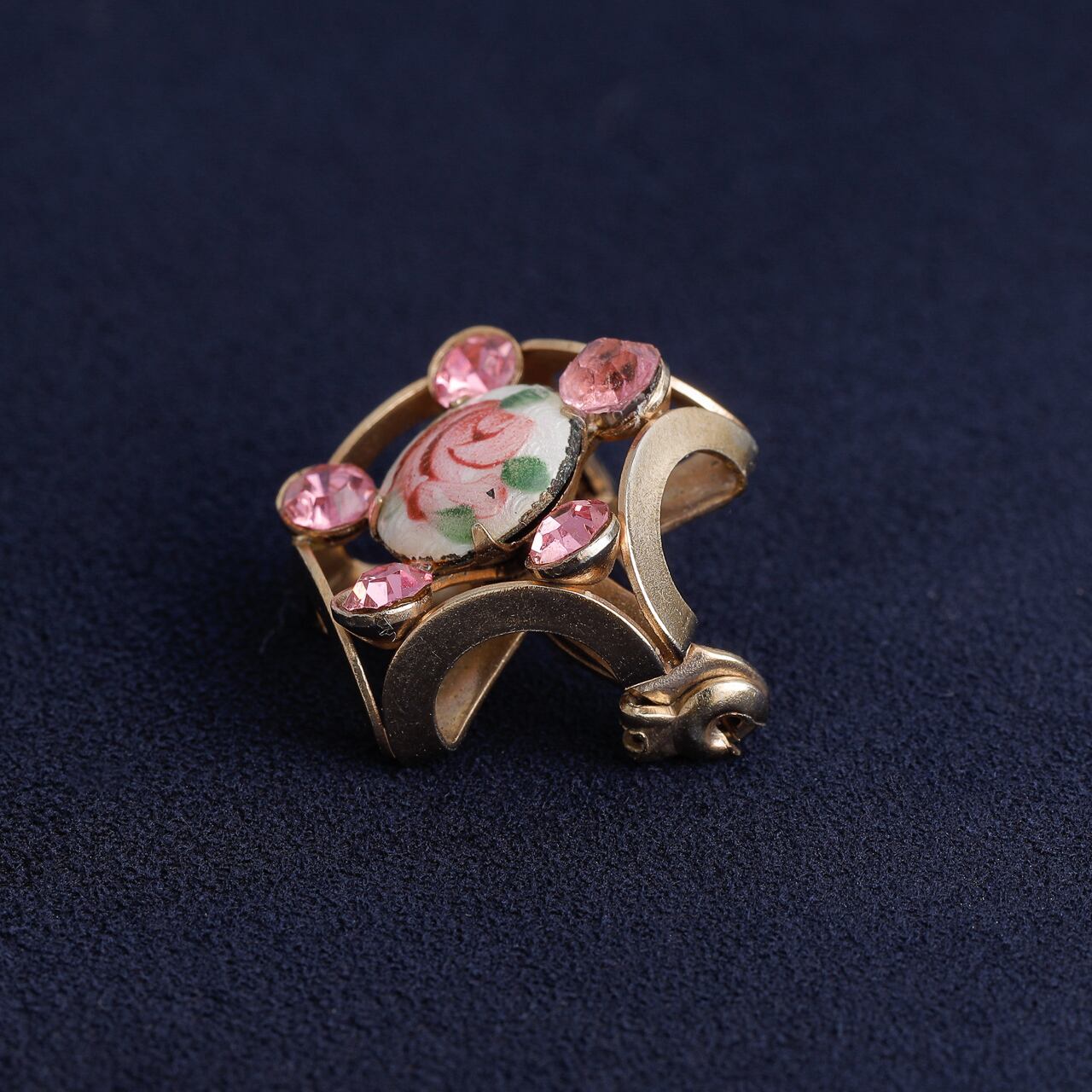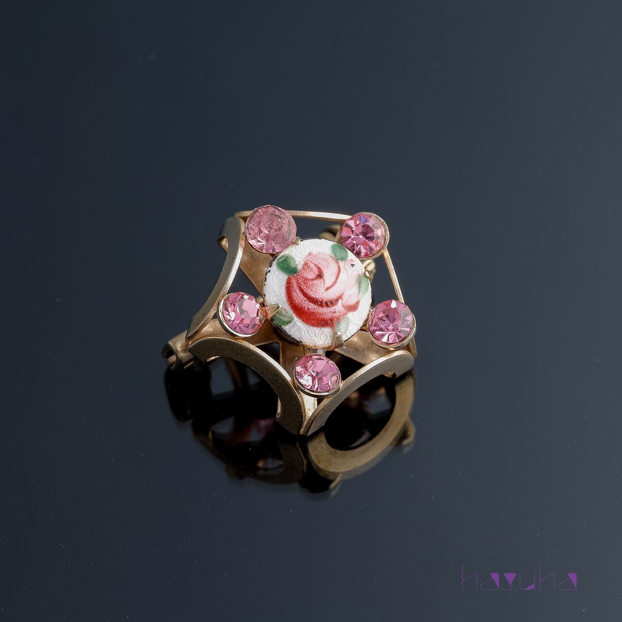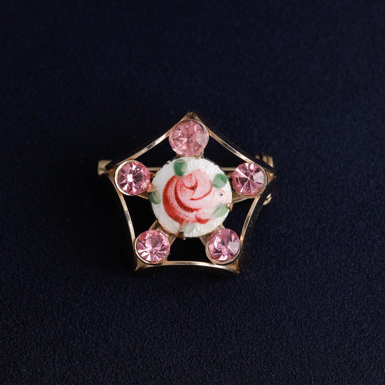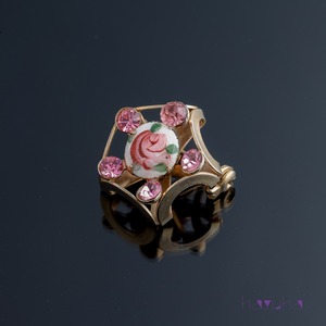 ヴィンテージ 70's ローズ ギロッシュエナメル ラインストーン ブローチ